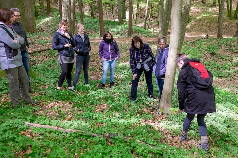 Nach dem Theorie-Teil im Gebäude des Service du patrimoine naturel (Naturerbe-/Forstbehörde) begaben wir uns mit den Teilnehmerinnen zum Praxisteil in den Wald (Naturerholungsgebiet Bambesch).