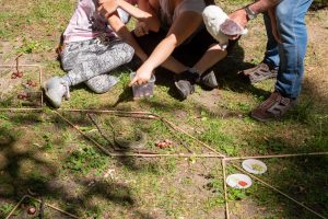 Neben dem Spaß, den alle hatten, war das Erkunden der Vier in vielerlei Gestalt zentrales Element dieser Einheit. Sowohl die Vielfalt der Vierecke als auch der kardinale und geometrische Aspekt der Vier beim Unterteilen und Schmücken der Beete hat Vielen geholfen, sich ein genaueres Bild von der Vier zu machen. Dabei wurde auch von diesen Jugendlichen die Eule Silberfeder als kluger Ratgeber und als gern gesehener Gast akzeptiert.