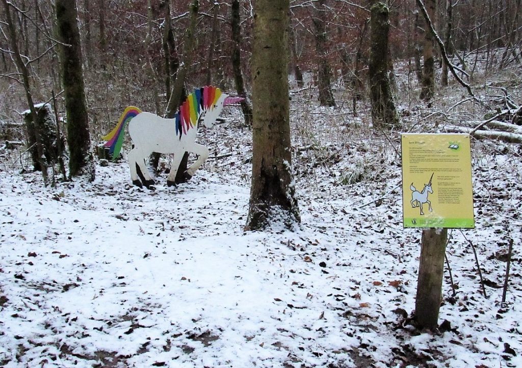 Auch in den Wintermonaten lädt der Erlebnispfad bei Würzburg zu spannenden mathematischen und naturkundlichen Entdeckungen im Wald ein. Der Pfad ist der Öffentlichkeit jederzeit zugänglich.