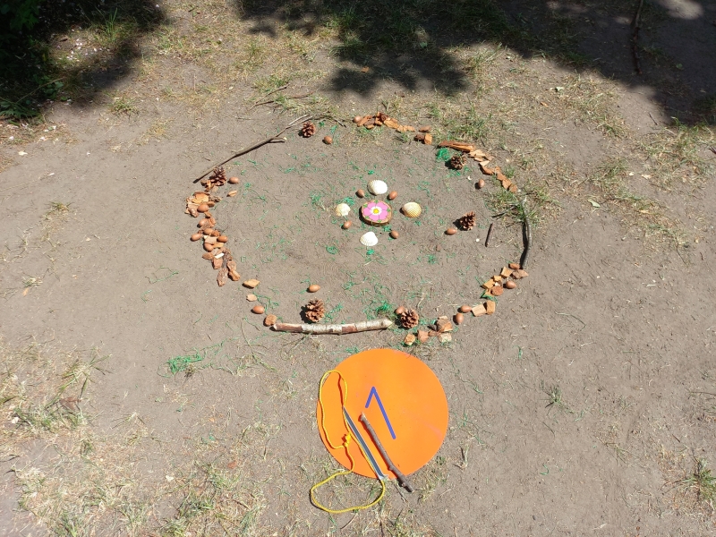 - Lege ein kreisrundes Gärtchen mit Hilfe eines Zirkels an und schmücke es.
