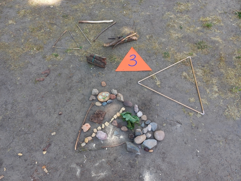 - Lege ein dreieckiges Gärtchen an mit der dreieckigen Stabfigur als Schablone. Schmücke es.