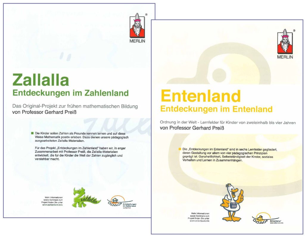 Eine Beschreibung der didaktischen Materialien, die bei unserem Partner MERLIN zu den Projekten Entdeckungen im Zahlenland und Entdeckungen im Entenland von Prof. Gerhard Preiß verfügbar sind