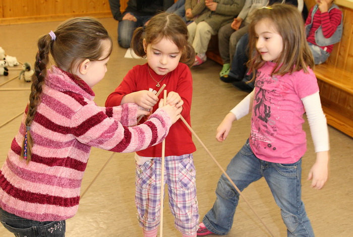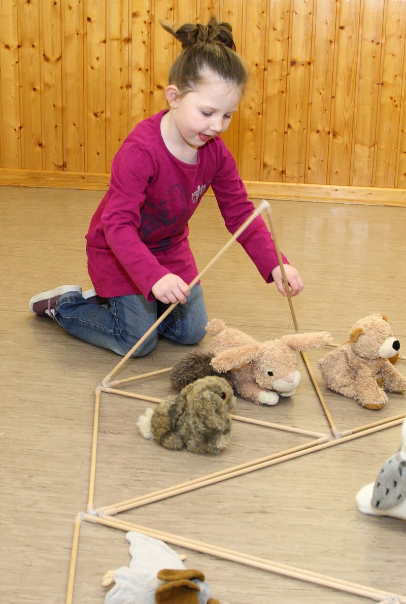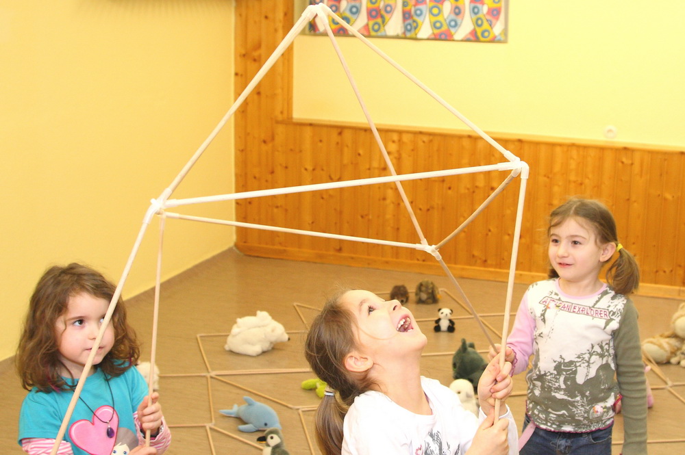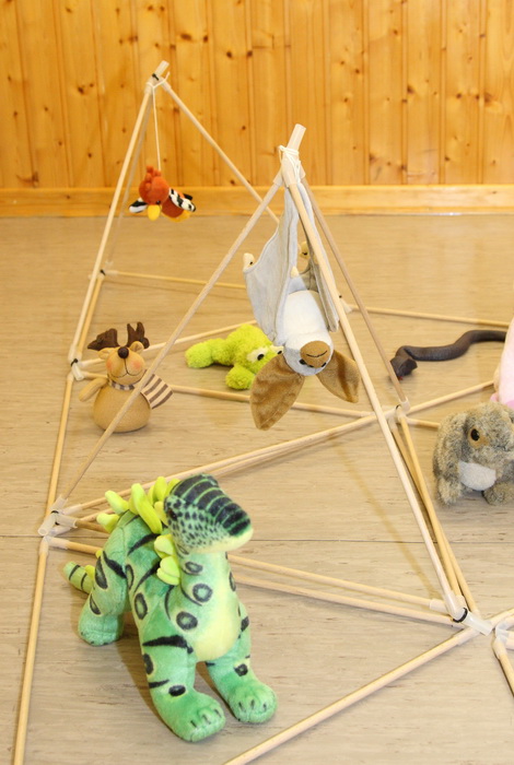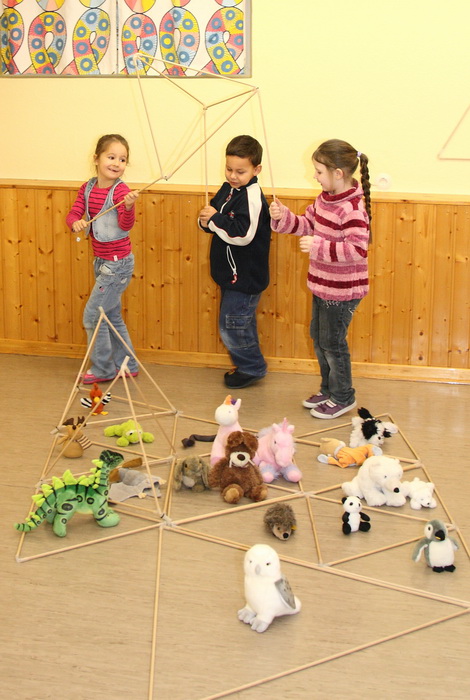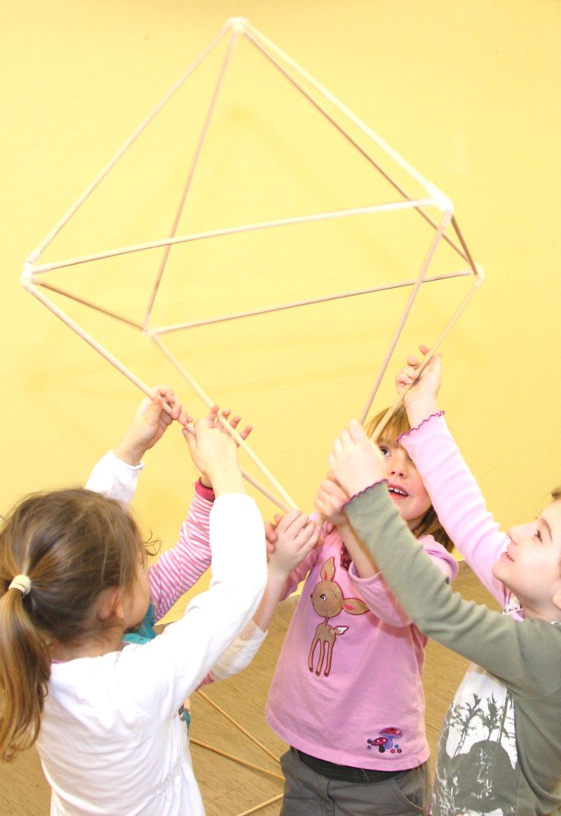 Das Baumaterial für die Zauberhafte Geometrie ist äußerst einfach: Holzstäbe, die mit Schlauchstücken verbunden werden. Materialangebote finden Sie in unserem Online Shop in der Rubrik Zauberhafte Geometrie.